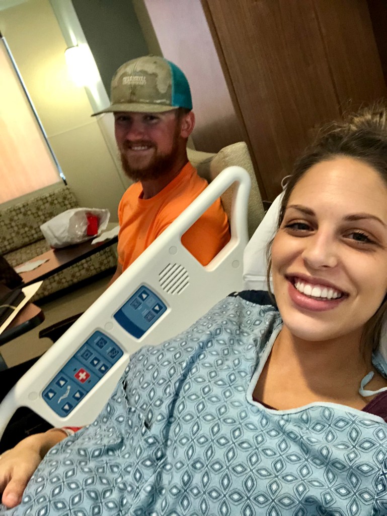 At 36 weeks I had another checkup where my midwife informed me she had to go out of town for a funeral, so she didn’t want to lift my bedrest and risk me going into labor. At 36+4 she told me I could start doing things like bouncing on the ball, eating spicy foods, sex, etc to get labor going! Woo! I was over pregnancy and just wanted to meet our baby boy! She figured it would only be a day or so before I had Wade. Well, again, what do ya know, he NOW decided he didn’t want to come! Of course! Lol. This kid has beat to the sound of his own drum since the beginning. At 37+1 weeks I went in and had a membrane sweep. I was dilated to a 2 and 100% effaced. I had to be dilated to a 4 to be admitted! So we came home and I thought I was in labor, so we went back to the hospital. Nope. Sent back home, again. The next morning, at 37 weeks and 2 days, I woke up around 2 am in a lot of pain. My back was K I L L I N G me. But I figured it was just fake and ended up going back to sleep. I woke up again around 4 am and took a bath because I was hurting. Garrett got up around 5 to go to work. Before leaving he asked if we should go to the hospital but I told him I wanted to wait. He got 15 minutes down the road before I asked him to turn around. His words? “It better be real because if not work is going to be really mad.” LOL. Talk about triggering a pregnant woman. Haha. I laugh about it now, but I wasn’t happy about it then. So he came home and loaded us up and off we went. When I got to the hospital, the same nurse that was there the night before that checked me, checked me again. She told me things were definitely progressing, but I was still only a 3, so I needed to go walk around the hospital for 2 hours and come back. She told me I was definitely having a baby today! Garrett and I decided we wanted to wait until we were for sure admitted and settled and knew what was going to happen before calling anyone. Off we went! We probably walked 324 laps around that hospital. A serious cold front/rain storm moved in the same morning so of course we couldn’t walk outside. Towards the end, I was having to stop every 1-2 minutes because the contractions were soooo bad. They were mostly in my back! So we went back up, they checked me again, and I was dilated to a 5! By now it was close to noon! They moved me over to the room I would labor in and asked if I wanted an epidural. YES PLEASE. *Side note, looking back, I really think I could’ve done it without. I was super thankful I got one, but I think I’m strong enough to do it without. Maybe that’s just in my head but the woman body is so dang strong and beautiful!
