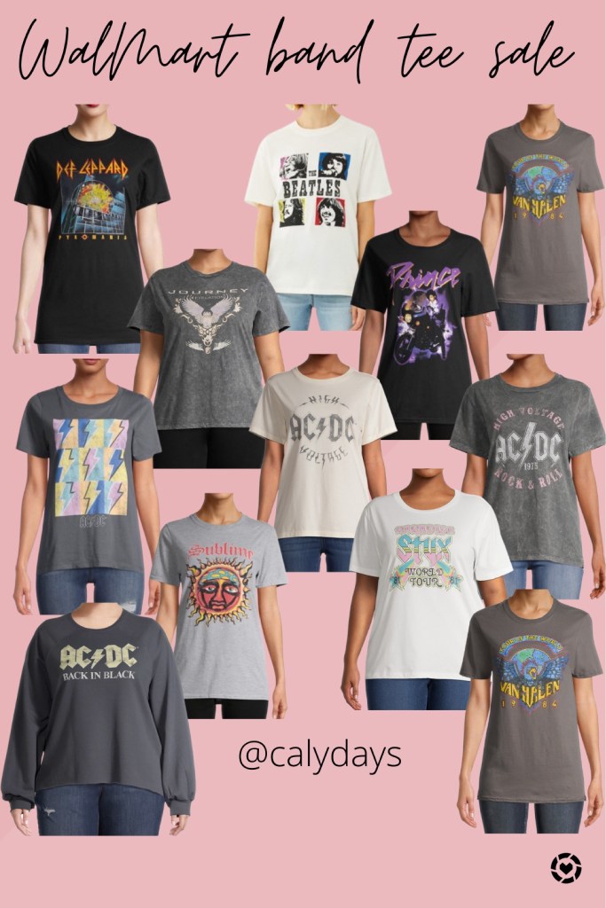 WalMart is having a KILLER band tee sale right now so I had to get on and link all of these for you! They are fully stocked in all sizes and all under $15! I’m obsessed with band tees, which you prob know by now, but any time they go on sale I jump at ordering a few! Size up 1 to 2 sizes in these because they do run a tad small! I’ll link them all here!