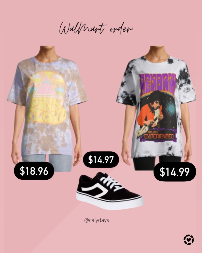 I went ahead and placed a WalMart order last night because I couldn’t NOT get these new band tees and Vans dupes! I kicked myself for not grabbing these Vans dupes last year when they were in stock so when I saw they came back I checkout out quick! HA! These graphic tees are super cute and both are under $20 which is my jam! I did size up to a Large just for a little more oversized look, but they seem like they’re true to size! I’ll let you know for sure when I get them in over the weekend! I’ll link everything here for easy shopping!